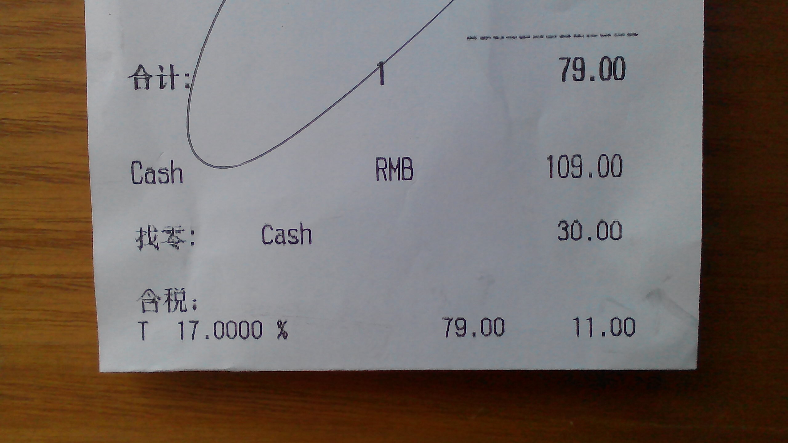 はっきりと律儀にも書いてあります。含税(税込み)17%と。ただ、計算が合わないのです、79元のものを買って、税率が17パーセントなら、税金は13.43元のはずです。しかし、代金である79元のよこには、11という数字があります。11元とするなら、税率は約14%になるはずですが…。一体どういう計算をしているのか分かりません。ひとつ言えることは、やはり税収はすさまじい額になっているということです。